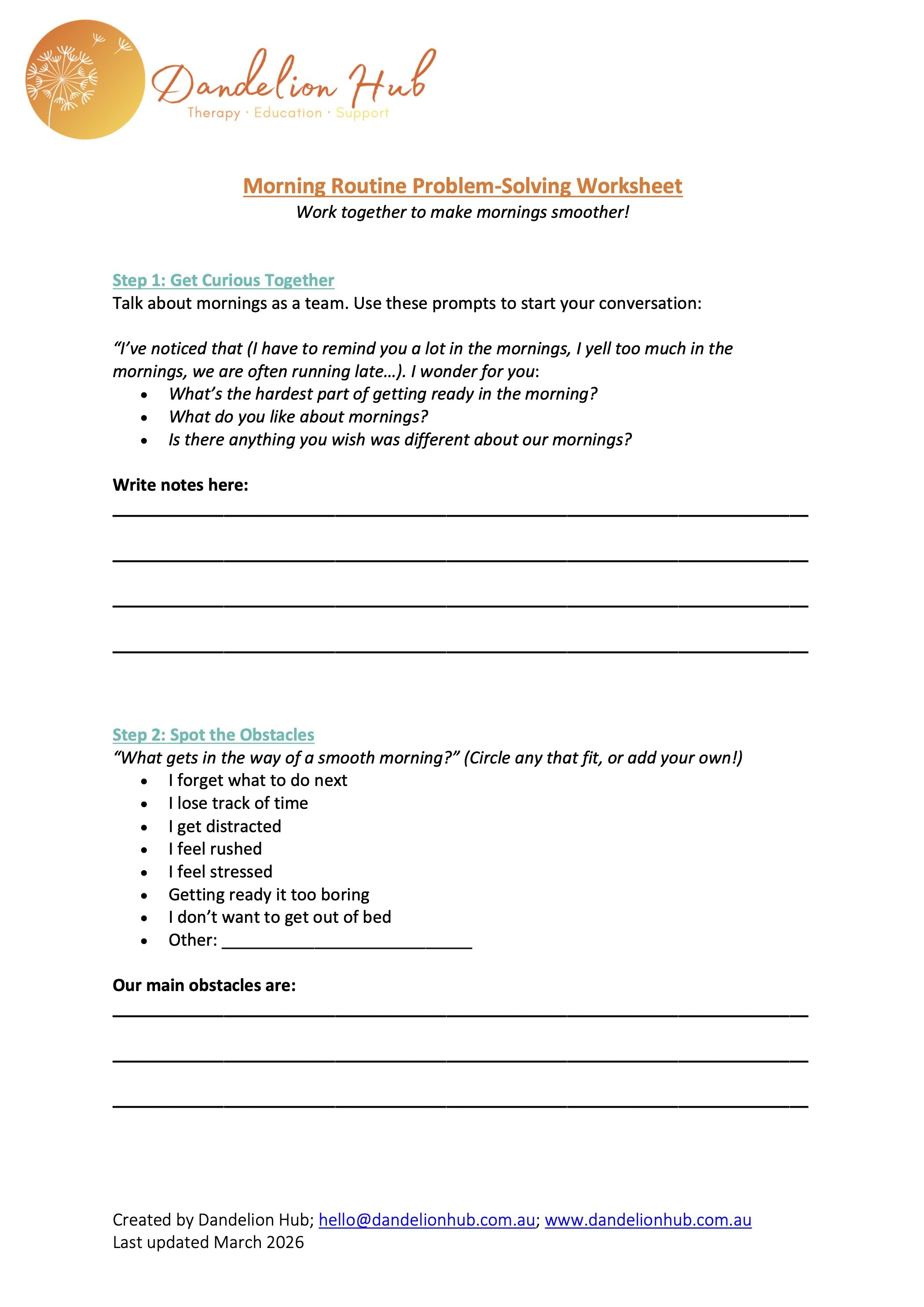 Morning Routine Problem-Solving Worksheet